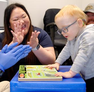 Relationships with community partners like GoBabyGo, for adaptive toy vehicles, Ablenet, to get AAC devices quickly, and Numotion, to evaluate and provide equipment such as wheelchairs, standers and bath chairs.