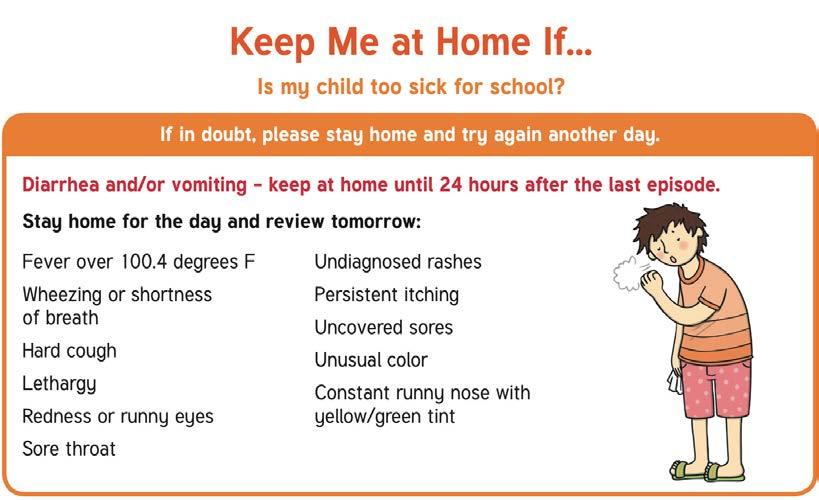 If a child has any symptoms listed below, they should stay home in the morning or go home if these symptoms first occur at school.