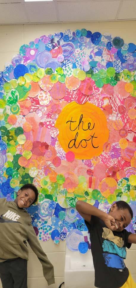 Over six (6) school days, they used eight (8) different art mediums to create a collaborative art project: one GINORMOUS DOT created out of all their individual dots.