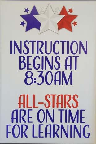 Every minute of the instructional day is valuable. While we are understanding extenuating circumstances, we highly discourage habitual late arrivals and early dismissals. We are here to educate our All-Stars. We appreciate all efforts given by our families to help us protect the precious, few instructional minutes we have with our students.