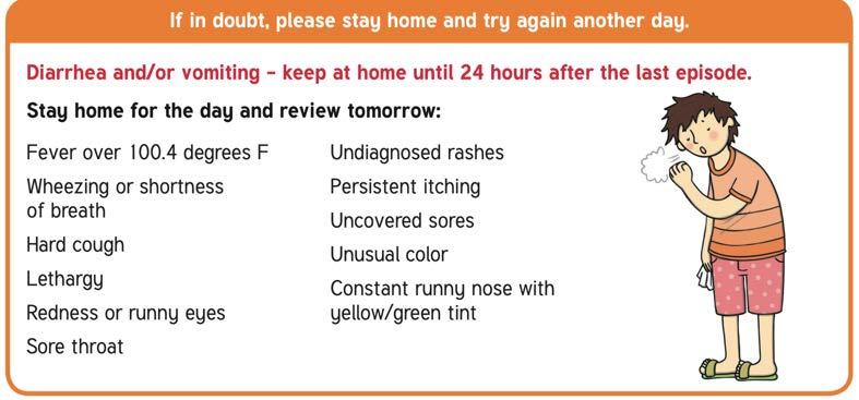 • Fever (many schools require children to be fever free for 24 hours without medication before going back to school)!