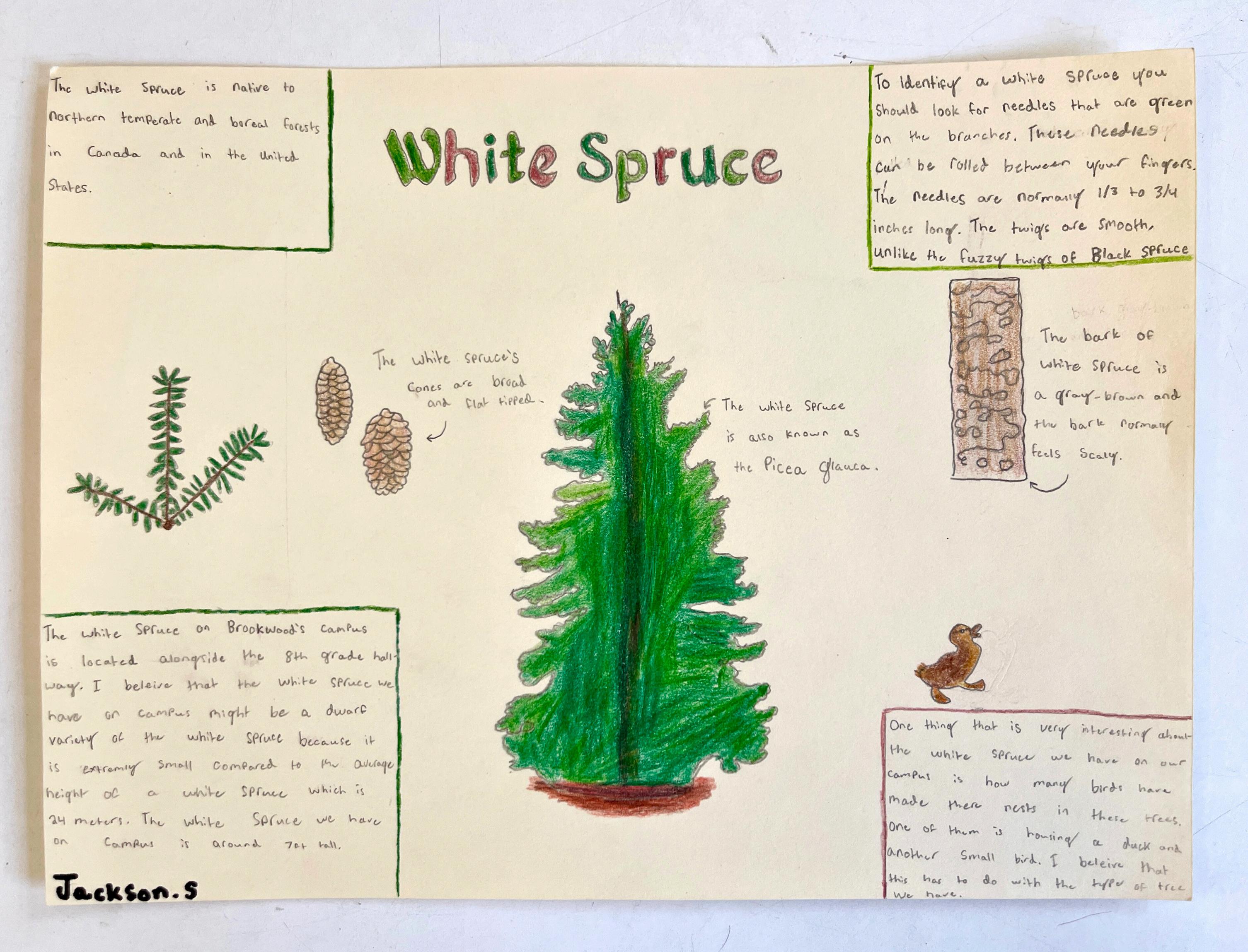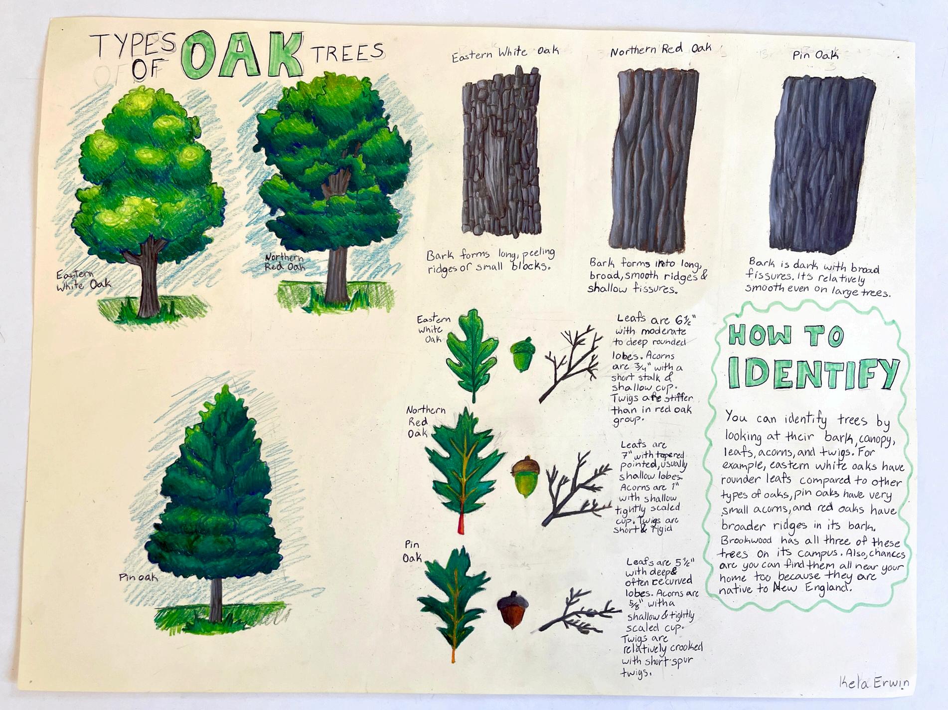Welcome to the Class of 2025's amazing Brookwood Field Guide project. It is organized into two categories: trees and shrubs that grow wild on the campus, and trees and shrubs that are part of the landscaping, mostly around the courtyard. The students' beautiful artwork, campus maps, and fun facts provide a resource that I will be able to use to teach future classes, and it will be distributed to the larger community so anyone can use it to draw closer to our amazing wet and wooded campus.