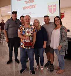 Morning Tournament and Afternoon Tournament Champions were recognized at the receptions and were presented with Crimson Blazers. Lucky 50/50 winners were announced, and grand raffle prizes were distributed. “Senior Champions,” “Longest Drive,” and “Closest to the Hole” awards were also presented. David Theard ’00 and Jessica Palazzo directed a successful “Hit the Bottle and Win It” putting contest. The committee along with an army of volunteers ensured a successful event.