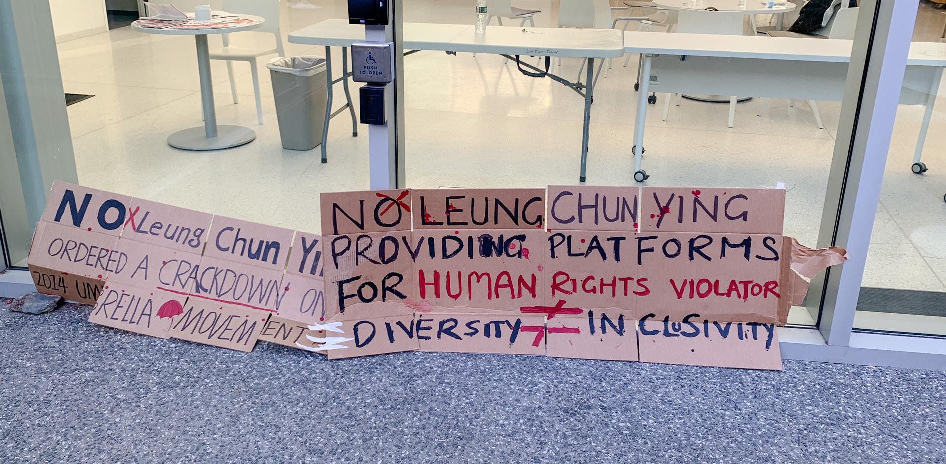 Off-campus pro-Hong Kong activists criticized the summit’s invitation, citing Leung’s handling of 2014 protests and his perceived stance on academic freedom.