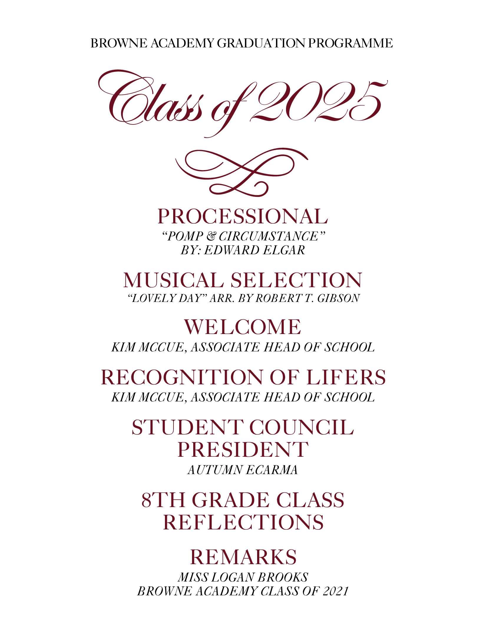 38th Annual Eighth Grade Graduation Ceremony Programme