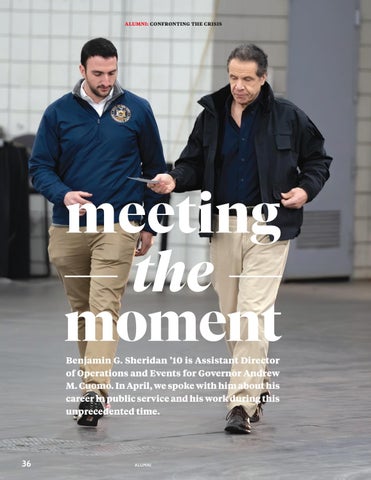 meeting the moment Benjamin G. Sheridan ’10 is Assistant Director of Operations and Events for Governor Andrew M. Cuomo. In April, we spoke with him about his career in public service and his work during this unprecedented time.