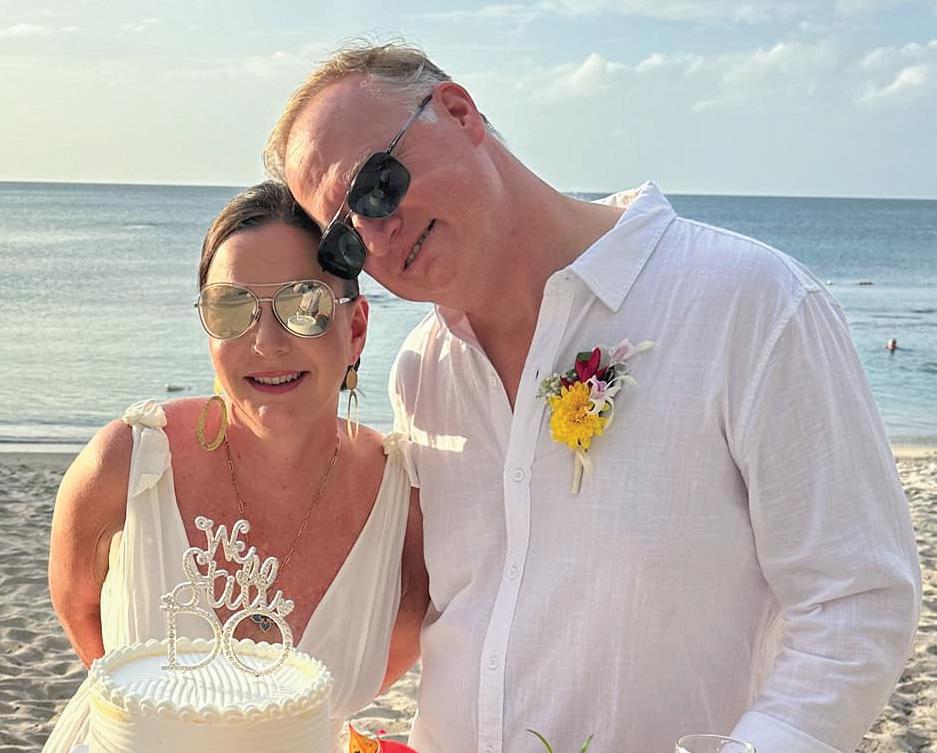 On February 6, a day after his 55th birthday celebration in St. Lucia, Gordon Graham ’88 and his wife, Cat, had a vow renewal ceremony on the island.