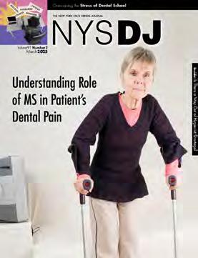 NYSDJ (ISSN 0028-7571) appears two times a year in print: January and June/July. The March, April, August/September and November issues are available online only at www.nysdental.org. The Journal is a publication of the New York State Dental Association, 20 Corporate Woods Boulevard, Suite 602, Albany, NY 12211. In February, May, October and December, members have online access to the NYSDA News. Subscription rates for nonmembers: $75 per year or $12 per issue, U.S. and Canada; $135 per year foreign or $22 per issue. Editorial and advertising offices are at Suite 602, 20 Corporate Woods Boulevard, Albany, NY 12211. Telephone (518) 465-0044. Email info@nysdental.org. Website www.nysdental.org.