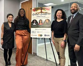 Seen at NYSDA Black History Celebration are, from left, NYCDS Past President Mina Kim; Emma Guzman, event speaker; Immediate Past President Vera Tang; NYSDA President Maurice Edwards.