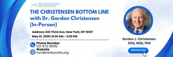 Renowned dental expert Dr. Gordon Christensen will appear in person May 1 at NYCDS to deliver “The Christensen Bottom Line,” a fast-moving course that looks at the areas of dentistry with the most activity and change in any given year. Course material is easily understood and includes summaries that help attendees interpret the ongoing advancements in the profession.