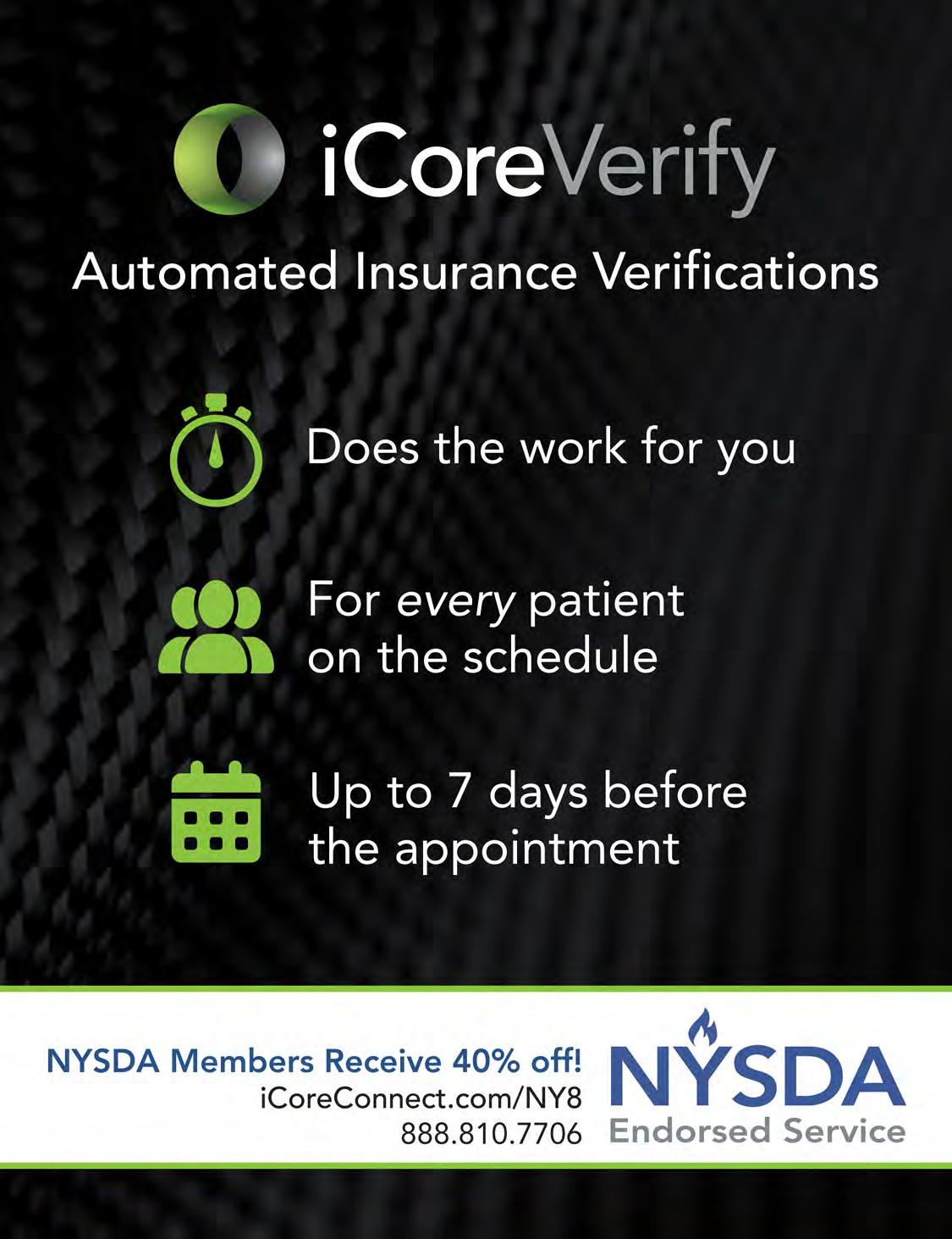 The New York State Dental Journal is a peer reviewed publication. Opinions expressed by the authors of material included in The New York State Dental Journal do not necessarily represent the policies of the New York State Dental Association or The New York State Dental Journal. EZ-Flip version of The NYSDJ is available at www.nysdental.org and can be downloaded to mobile devices.