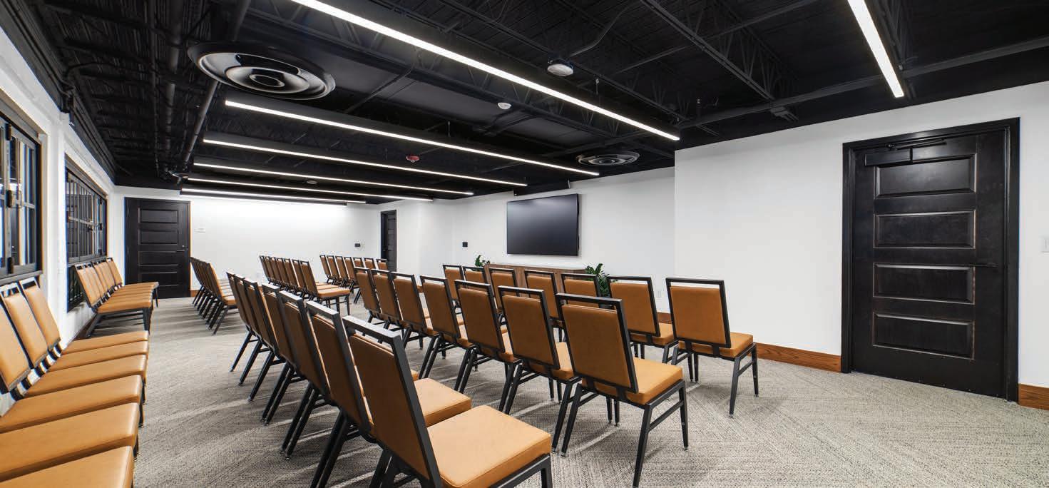 The Lounge offers casual seating with bar access. Whether it’s chatting with coworkers or telling old stories during a reception, the Lounge is sure to set the perfect tone for your event.