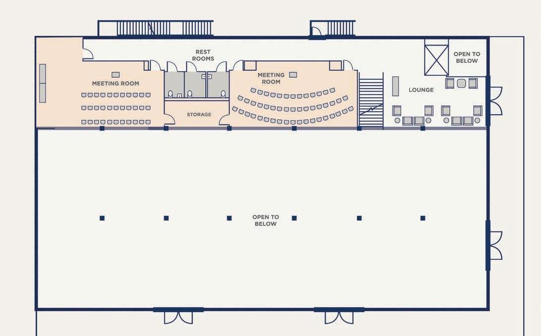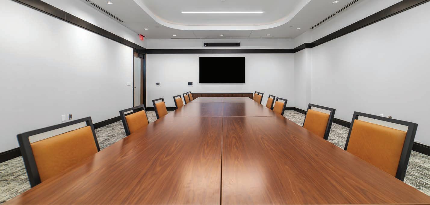 A corner room that offers 468 square feet of meeting space ideal for executive meetings, board meetings, or small cocktail receptions. The Byars Meeting Room can seat up to 78 people in a theater-style setting.