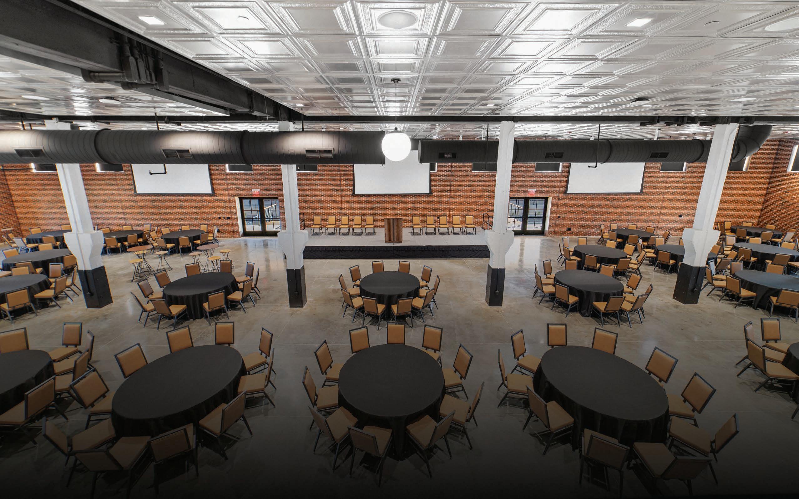 At 7,155 square feet, our largest indoor room offers enough space to accommodate 510 guests for a formal seated banquet with a dance floor and entertainment. Radford Hall can also be used as a conference or trade show hall.