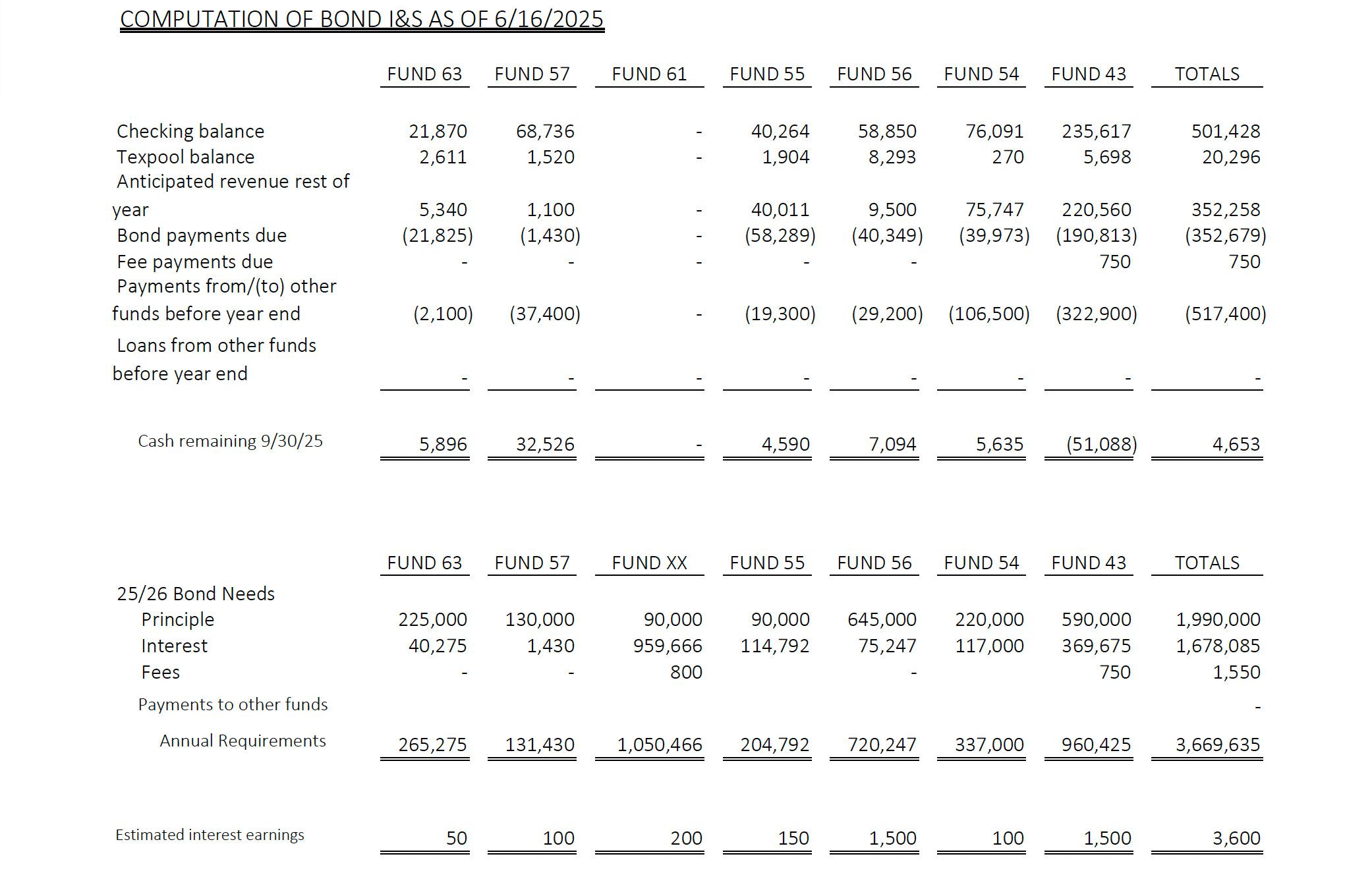 E. To provide for interest and create a sinking fund for outstanding Certificate of Obligation Bonds, Series 2025 (Downtown Improvements CO 25), $17,800,000, .0414 dollars on each $100.00 assessed valuation of property. III.