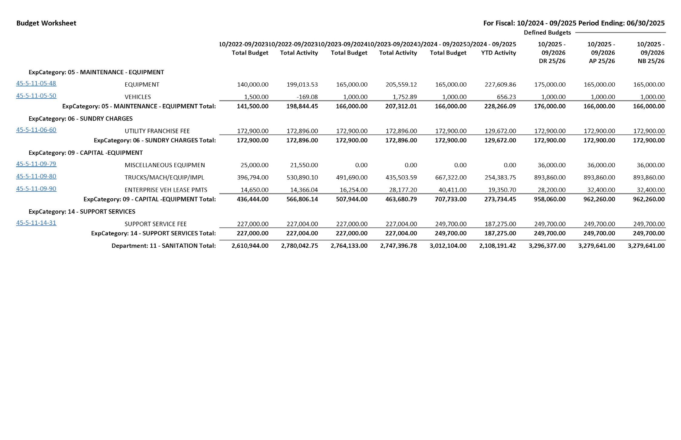 SECTION 5. That the sum of $7,587,063 is hereby appropriated from the Sanitation Fund for payment of operating expenses and capital expenditures as itemized in the budget of the Sanitation Fund