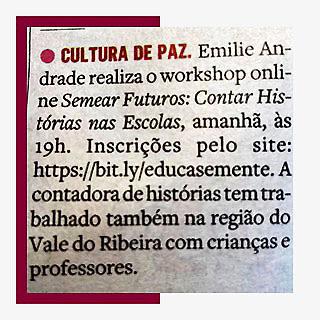 Divulgamos o projeto Sementeira: Histórias Semeiam Mundos, da contadora de histórias Emilie Andrade, resultando na publicação de nota na disputada coluna Direto da Fonte, de O Estado de S. Paulo (aqui), seguida de artigo assinado no blog de Mariana Kotscho, referência em educação no UOL.