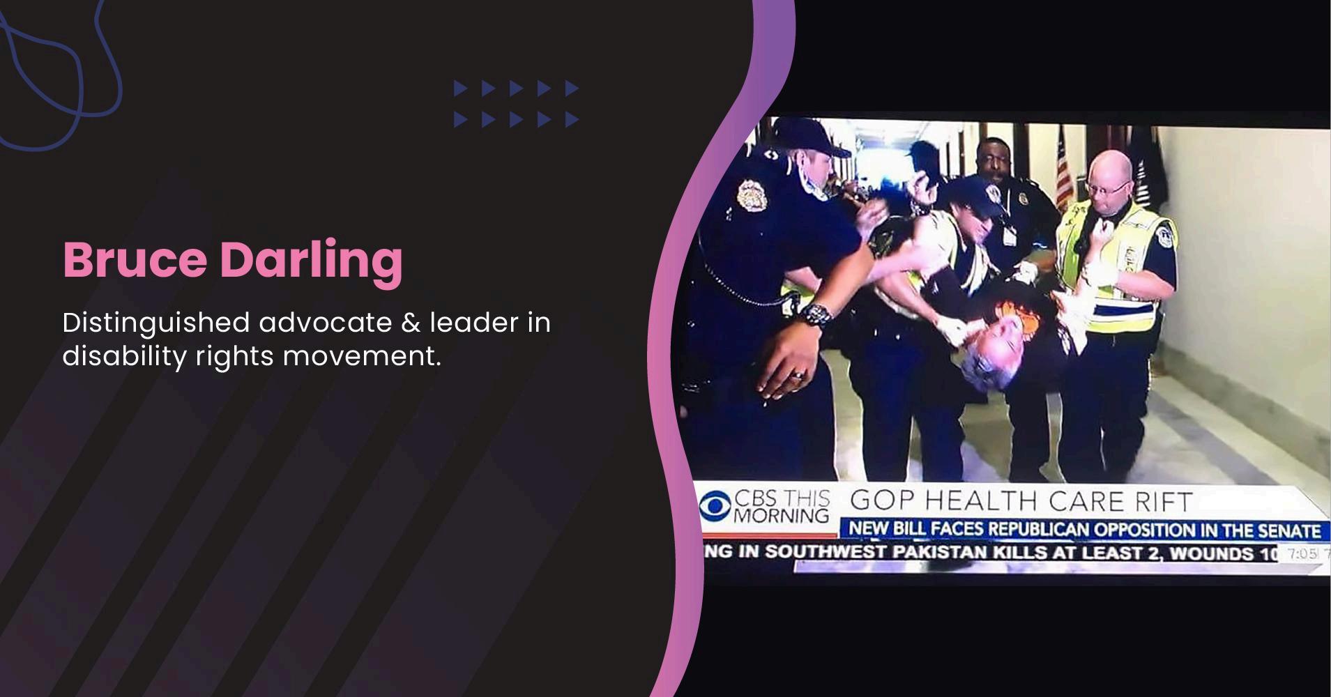 He honed these skills over several decades, participating in or organizing many disability rights protests One of Bruce's most notable achievements as an activist was his role as the lead organizer of the Summer of ADAPT, a 36-day series of protests across the United States in 2017
