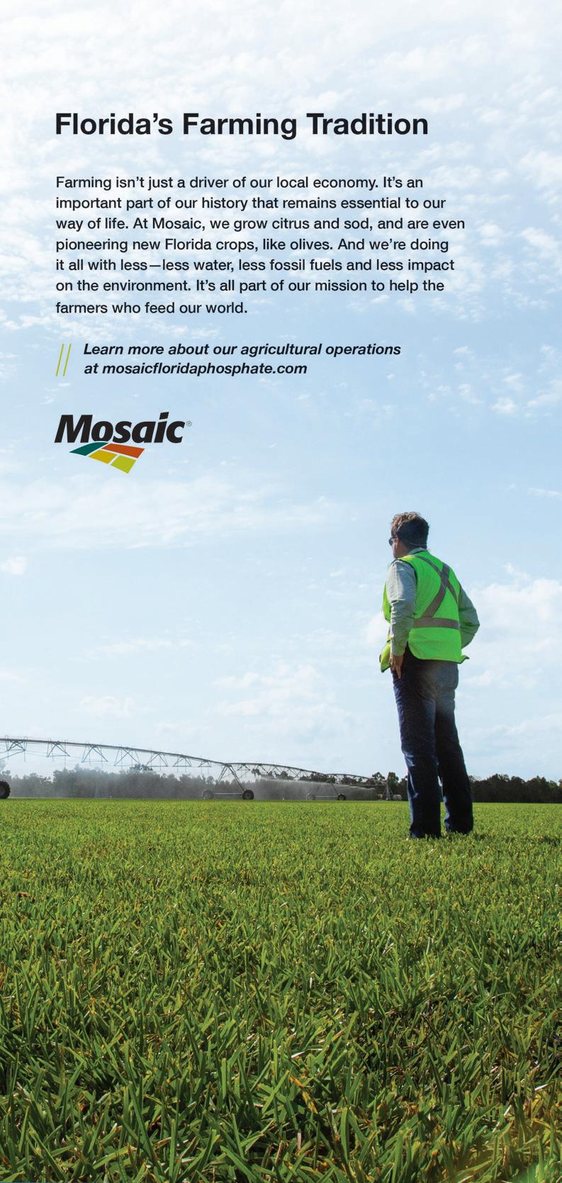 HOME TO 47,400 FARMS SPREAD ACROSS 9.7 MILLION ACRES, FLORIDA HAS an ideal climate for producing a diverse range of agricultural products. From citrus groves and nurseries to cattle ranches and field crops, Florida farms collectively produce more than 300 different commodities, contributing greatly to the success and stability of the state’s economy.