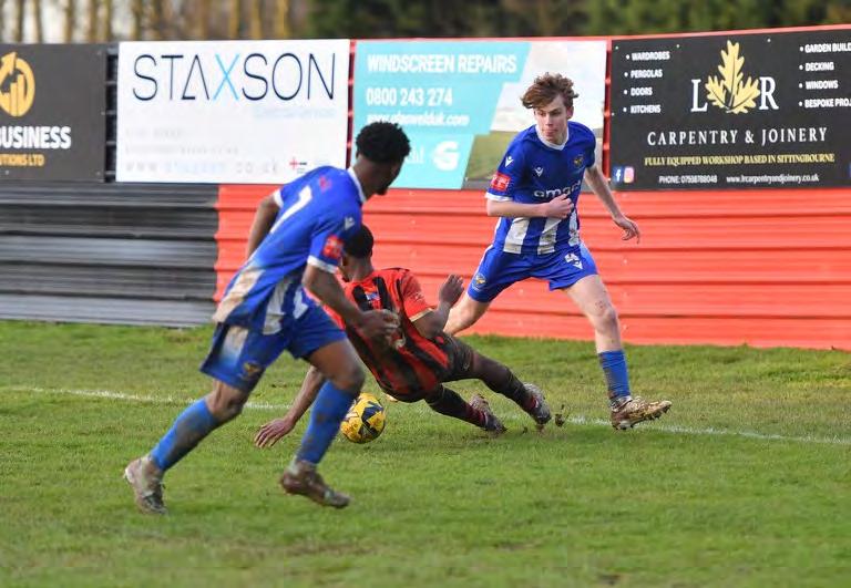 finalists in the John O’Hara Cup. In 2015 they recaptured the Division 1 title for the first time in 23 years on the final day and the last year of the Sussex County Football League. With Mark Bennett’s departure, player George Gaskin took over management of the club and guided the team to a mid-table finish. A year later the team dropped out of the topflight and into Division 1. In 2018, Littlehampton Town welcomed back both Mark Bennett as manager and George Gaskin as striker to help rebuild the club and return them to former glories. With Gaskin joined at the managerial helm by Mitchell Hand, the first year back in the Southern Combination Football League Premier Division was arguably the best in the team’s 126-year history to date. The Marigolds won the title, again on the final day of the season in front of 1,000 fans. But it was also in the cups that brought them so much glory. As winners of both the League Cup and the RUR Charity Cup, a historic treble was nearly a quadruple as the team became the first from Sussex to reach Wembley to play in the FA Vase final, losing 3-0 to Newport Pagnell. Still, a fantastic achievement and the club finished a respectable 12th in their firstever season at Step 4 in the Isthmian Football League South East Division last year.