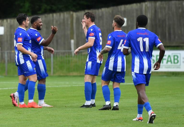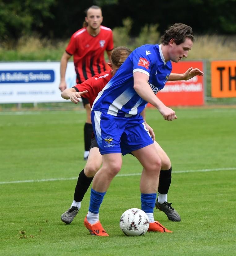 And although the home side had more of the ball and the chances, Grinstead defended with tenacity and organisation and had the clearest opportunity of the game with five minutes to go when Tom Cadman, making a welcome return after missing the second half of last season through injury, struck the underside of the crossbar with a strike from the edge of the box. If goalline technology had been in use it would definitely have been employed, with some of our players claiming the ball had crossed the line. Earlier, Omar Folkes had fired just wide with only the keeper to beat after expertly rolling a defender. At