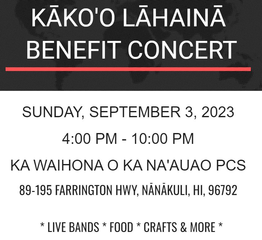 The Kāko'o Lāhainā Benefit Concert is organized to support Keʻeaumoku Kapu and Nā ‘Aikāne o Maui Lahaina Cultural Center, an initiative that aims to preserve and revitalize Maui's ancient connections that unfortunately have been lost in the recent wildfires of Lāhainā. Nā ‘Aikāne o Maui Lāhainā Cultural Center was a gathering place for his community. E KŌKUA KĀKOU