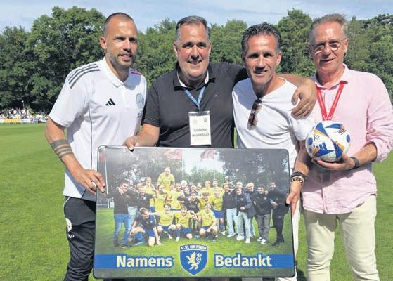 den. Ajax trainer John Heitinga, voorzitter Johannes Stalenburg en Marco van Regteren overhandigden aan Jan van Raalte een prachtig ingelijste foto van het team.