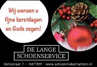 Het weekblad voor de gemeente Hattem 3e jaargang, nr. 46, 21 december 2022 CV-ketel onderhouden? T (038) 444 89 99 www.zwanepolbv.nl installatie l inregelen service en onderhoud gemeentenieuws zie pagina 12, 13, 14 Makelaardij & Taxatie 038-444 32 33 • www.posthuis.eu SOLLICITEER VIA : INFO@WHAIR.NL JOIN OUR TEAM..! - Tel: 038-4447600 - Hattem Kruisstraat 18 Werkerlaan 93 - Zwolle - Tel: 038-4237773 ONZE SPECIALITEITEN - BAVETTE - PICANHA - RIB-EYE - ENTRECÔTE en natuurlijk - TOURNEDOS ROLLADES: - Half om half met - VARKENSHAAS - RUNDER - VARKENSFILET - en KIPROLLADES BESTEL OP TIJD! Taxatierapport of bouwkundige keuring van uw woning nodig? Natuurlijk gaat u naar Zwartewaterallee 48 ZWOLLE (038) 888 90 56 info@ijsseltaxateurs.nl www.ijsseltaxateurs.nl WWW.KNOLMAKELAARDIJ.NL 038 303 82 00 Gewijzigde aanlevertijden in verband met Kerst HATTEM - In verband met Kerst gelden er gewijzigde aanlevertijden. Kopij voor de Hattemer kan aangeleverd worden tot donderdag 22 december: 17.00 uur. Advertenties kunnen aangeleverd worden tot: vrijdag 23 december 12.00 uur. Rouwberichten kunnen worden aangeleverd tot: dinsdag