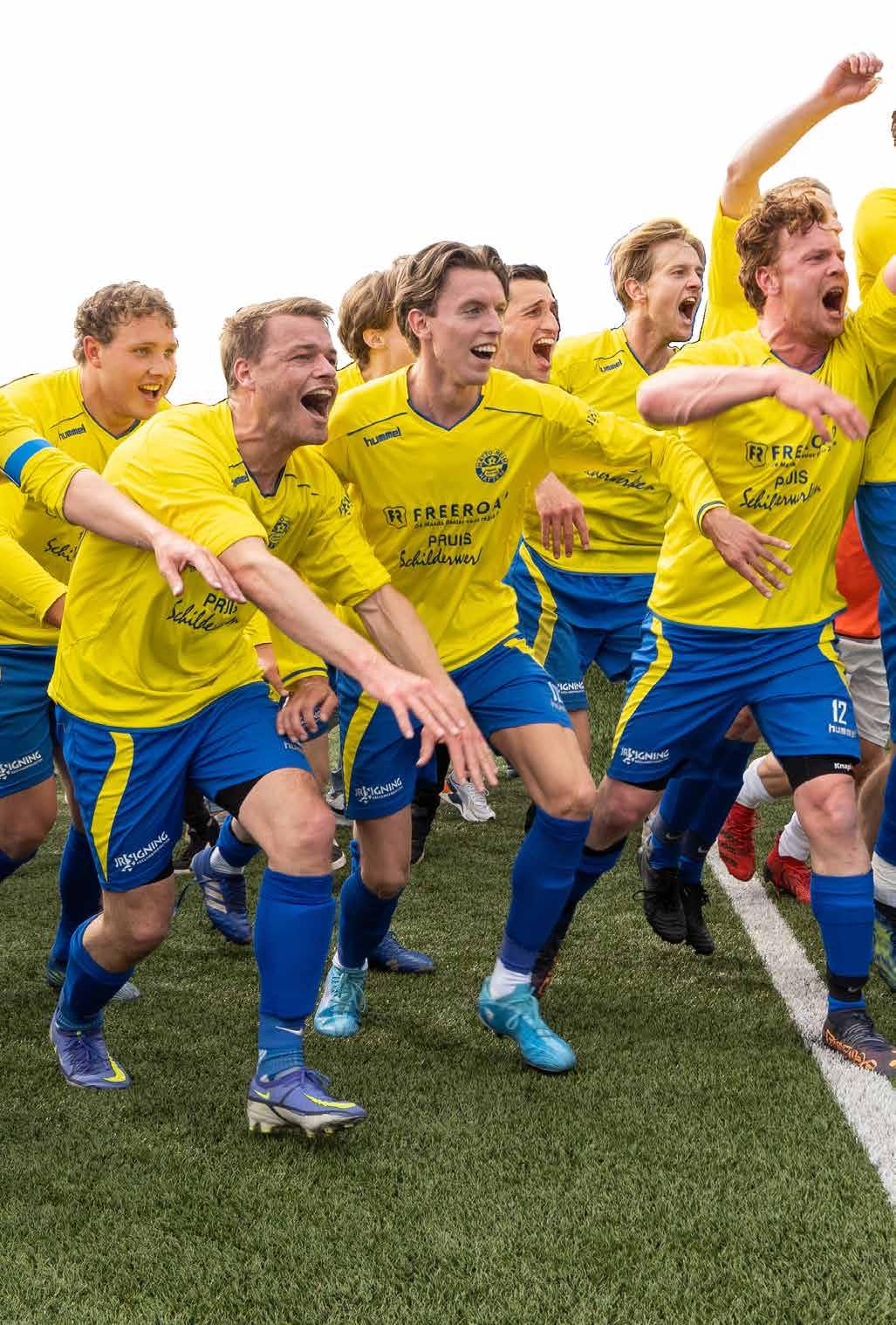 niets weggaf. Trainer Oosterhaar wisselde uit voorzorg Jens Borger en Jari Dunnink waardoor Chris Oosterveen en Niels Schiphorst binnen de lijnen kwamen. Kort hierna bracht Wesley van Winsum de stand op 0-5. Even later werd ook hem rust gegeven en kwam Felix Noordberger binnen de lij nen voor de laatste 20 minuten. Hij bracht uiteindelijk de eind stand op 0-6.