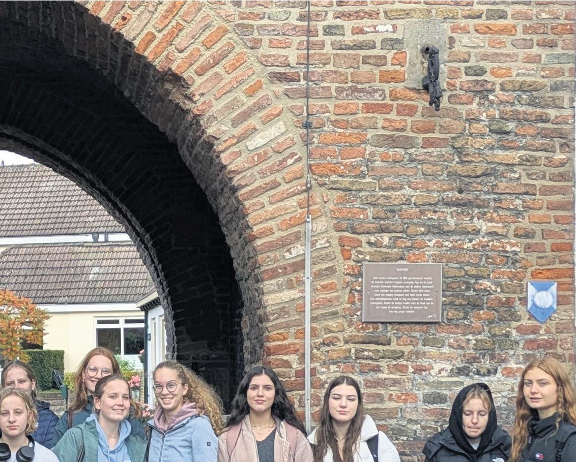 de buitenlandse leerlingen mee aan de tweedaagse workshop ‘A Trip Through Time’. Op de eerste dag bezochten ze in de ochtend allerlei interessante plekken in de omgeving, waaronder Spijker Watervliet, de Spaanse Graven, de Trijsberg en de oude watermolen bij landhuis Molecaten. In de middag werd de oude binnenstad verkend. De tocht voerde onder andere langs de oude stads-