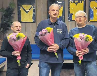 ne attentie. Hierna werden de prijzen door de organisator Hendrik Talsma (op de foto achter de top 3) uitgereikt. De vleesprijzen werden aan de kaarters overhandigd door zijn assistente Cyntia Koolman. De eerste prijs was voor Jan Koster (op de foto in het midden) met 10877 punten. De tweede prijs was voor Gerrie Keijl (op de foto links) met 10667 punten en de top 3 werd compleet gemaakt door Anton Hollegien (op de foto rechts) met 10489 punten. Na de zomervakanties van 2023 zal het klaverjassen, in de Triangel, op de Zaterdagmiddag weer een aanvang krijgen. De datum hiervoor zal via de gebruikelijke kanalen worden gepubliceerd.