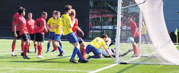 HATTEM - Het is een ongeschreven wet in het voetbal: als je zelf de kansen niet benut, dan valt ie aan de andere kant. Precies dat overkwam Hattem in de eerste helft in de thuiswedstrijd tegen sc Lutten. Op het moment dat de bezoekers op voorsprong komen, hadden de geel-blauwen er al zeker drie in moeten prikken. Desondanks had Hattem een veldoverwicht en werd de dadendrang na rust ruimschoots beloond met vier doelpunten. Hierdoor werd het alsnog een ruime overwinning voor Hattem. Net als vorige week in Hasselt begon Hattem ook in de thuiswedstrijd tegen Lutten goed. Binnen een minuut had Felix Noordberger pech dat zijn kopbal op de lat belandde. Kort daarna een tweede kans voor hem wanneer hij na een mooie aanval zijn inzet net aan de verkeerde kant van de paal over de achterlijn ziet verdwijnen. Hattem bleef het betere van het spel houden waarin Lutten veel mensen achter de bal had en via een counter en de lange bal pokerde op een kansje. Net voor het halve uur was het dan plots 0-1. Een goede vrije trap vanaf de zijkant door Lutten werd op het laatste moment nog licht getoucheerd waardoor doelman Pool kansloos was. In de tweede helft ging Hattem door waar het voor rust mee gestopt was en had al vrij snel wat