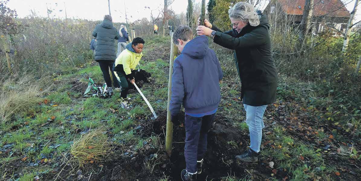 Er zijn verschillende soorten bomen geplant zoals eikenbomen, notenbomen en tamme kastanjes. Het was een geslaagde ochtend, en de leerlingen kijken er naar uit om in het voorjaar terug te komen en te zien hoe de bomen bloeien.