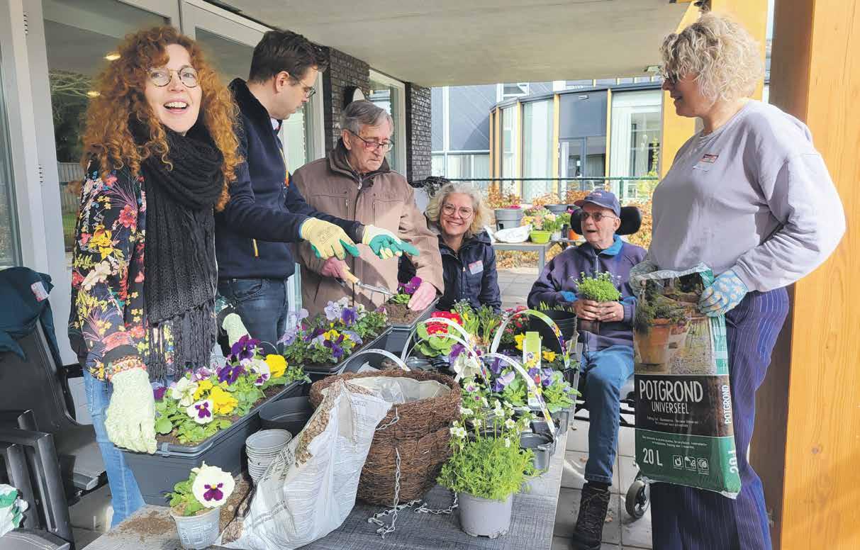 Zaterdag werden tijdens deze landelijke vrijwilligers dag de plantenbakken in het Atrium van de Hof van Blom opnieuw voorzien van violen. Namens het college was wethouder Tjitske Siderius aanwezig. Na de koffie werden onder toeziend oog van de bewoners de 16 plantenbakken gevuld. Een geslaagde actie, waarbij de gezelligheid en de ontmoeting tevens belangrijk waren.
