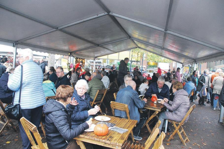 Donderdag 27 oktober begint de warenmarkt/braderie en de rommelmarkt om 8.00 uur. De rommelmarkt wordt georganiseerd op het parkeerterrein van de kerk. De opbrengst gaat naar 15 kinderen in ontwikkelingslanden.” De offici le opening van deze jubileumedi�e van het Koefeest vindt plaats om 9.30 uur door burgemeester Tom Horn. Aan de Kerkweg staat een tent met koeien. “Daar hebben we een show met mooie melkkoeien met voor de kinderen een knuffelkalf. En er zijn ezels van de Koperen Ezel te berijden. Daarnaast is er natuurlijk de spectaculaire cross met