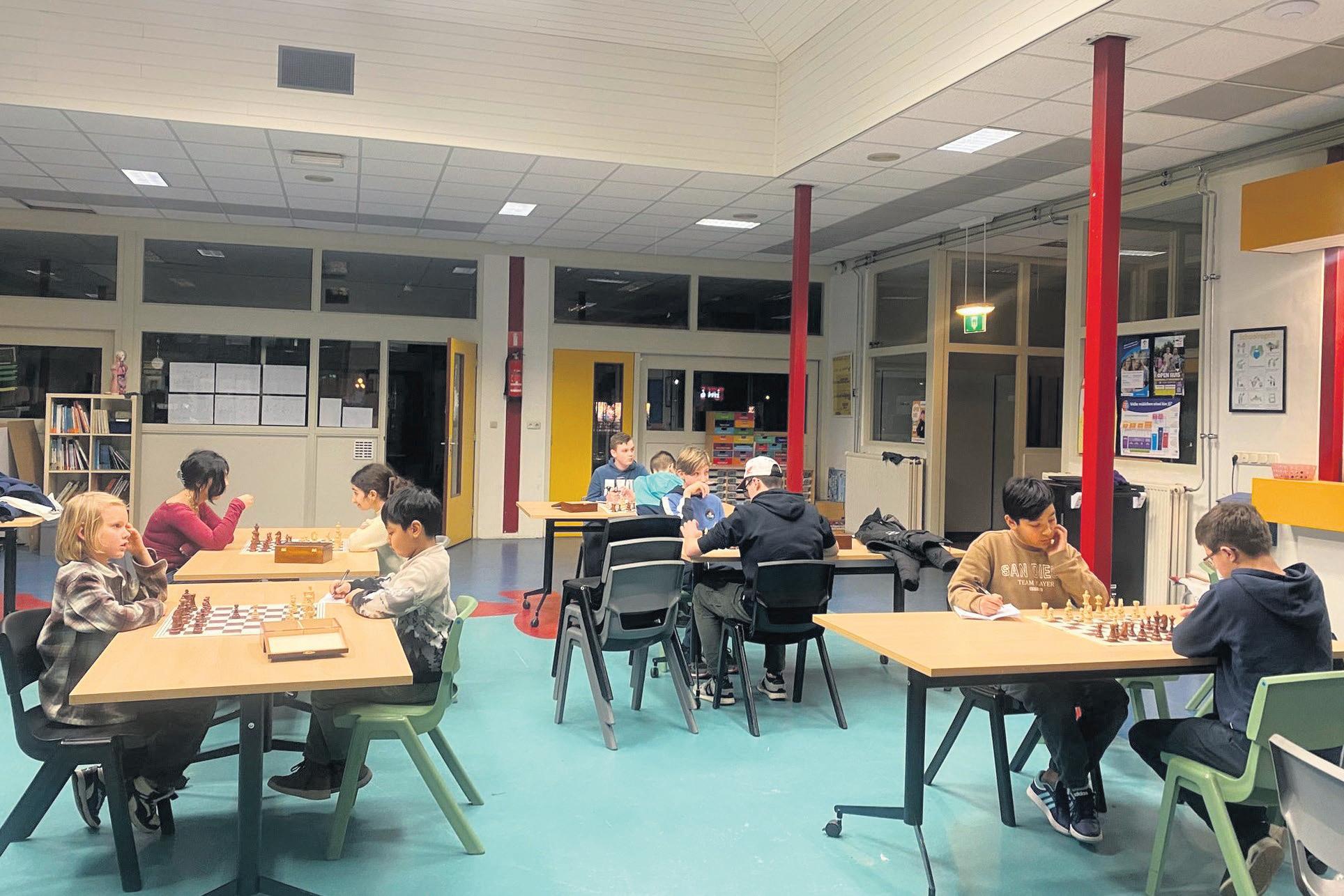 een bloeiende jeugdafdeling, 17 jonge schakers vinden elke dinsdagavond de weg naar de Van Heemstraschool om schaakles te krijgen.