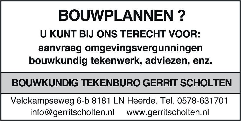 Voor het inzien van de volgende stukken kunt u een afspraak maken via het Publiekscentrum, telefoonnummer 0578 - 69 94 94 of e-mail gemeente@heerde.nl.