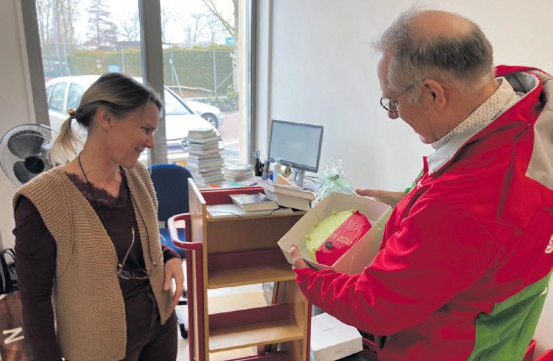 WAPENVELD- Lijstrekker Hans ten Hove van GroenLinks-PvdA bracht samen met andere fractieleden een bezoek aan de gloednieuwe bibliotheek in de Hof van Cramer in Wapenveld. Het bezoek ging over het belang van goede voorzieningen in alle dorpskernen van de gemeente Heerde. “De bibliotheek is een enorm belangrijke schakel in deze keten”, aldus de lijsttrekker. Als welkomstcadeau voor de bibliotheekmedewerkers overhandigde Ten Hove namens GroenLinks-PvdA een roodgroene taart met het opschrift: ‘Jij gaat vooruit’. De tekst verwees naar de nieuwe mogelijkheden die de bibliotheek biedt; op deze nieuwe locatie zijn de openingstijden aanzienlijk uitgebreid. “Daarmee is de kans op leren, lezen, ontdekken en ontmoeten voor Wapenvelders en mensen uit de omgeving sterk vergroot”, benadrukte Ten Hove. GroenLinks-PvdA blijft voorzieningen zoals de bibliotheek actief steunen. “In de gemeenteraad zet-