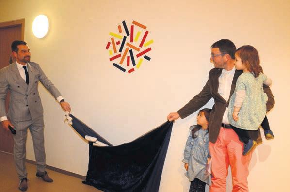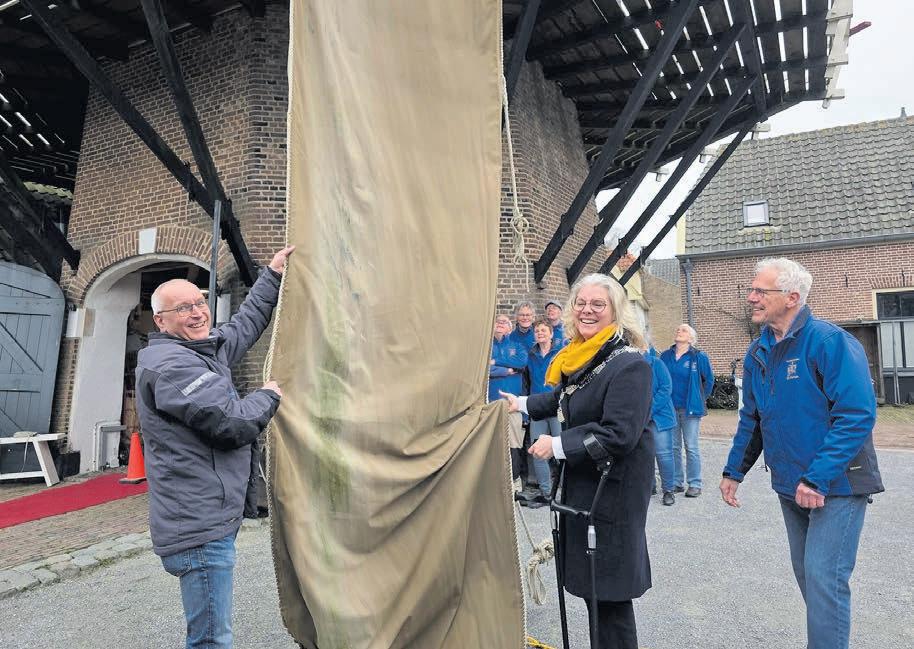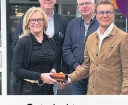 en nieuwe idee n. Onze wens is dat het gaat voelen als een oude jas. n het kunstwerk dat werd onthuld, komt het oude logo van de Hof van Cramer terug. o komt de oude locatie terug in dit nieuwe gebouw. Voorafgaand aan de onthulling bood de kunstenares, neke Crans, het kunstwerk alance aan, als cadeau aan de Wapenveldse samenleving. Aansluitend kon iedereen de nieu-