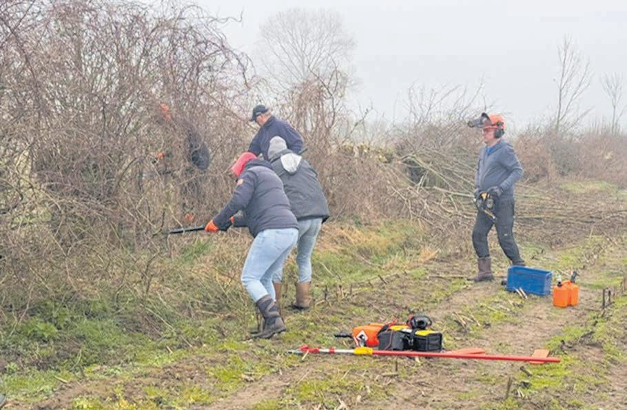 E E- aterdag hebben leden van de ionsclub Epe hun handen uit de mouwen gestoken op Landgoed Tongeren. De mannen hielpen mee met het onderhoud van het recent aangelegde voedselbos De rote Kweek op het landgoed. Fred Weenink, lid van de programma commissie van de Lionsclub Epe, legt uit: “We zijn als Lionsclub op zoek gegaan naar een maatschappelijk project waar we een steentje aan konden bijdragen. o zijn we bij het andgoed Tongeren uitgekomen. Vorig jaar hebben we mee geholpen met de eerste inplant van het voedselbos en nu zijn we er weer. Het idee is om dit te continueren. De clubleden zijn samen met andere vrijwilligers drukdoende houtsnippers onder de beplanting te gooien. De houtsnippers zorgen ervoor dat het vocht in de zomer wordt vastgehouden en dat er geen onkruid