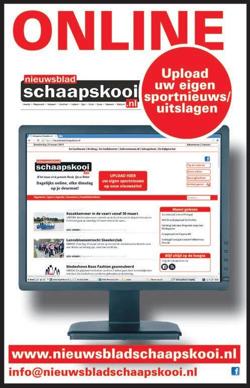 NIEUWSBLAD SCHAAPSKOOI - PAGINA PAGINA 2 Dorpsstraat 24a, Oene 0578-641148 FIETSMETING COMPLEET • (zadel-)pijnvrij etsen • maatwerk afstelling • volop etsplezier! Maak nu een afspraak ! Houtweg 49 8167 PJ Oene (0578) 64 12 94 www.aalbertsduurzaam.nl Zonnepanelen Zonneboilers Warmtepompen Pelletkachels Autolaadstations Zonnepanelen GRATIS VERHUISBUS WWW.MOZA.NL GRATIS VERHUISBUS WWW.MOZA.NL GRATIS VERHUISBUS WWW.MOZA.NL GRATIS VERHUISBUS WWW.MOZA.NL Met hierin opgenomen Jaargang 38 I Week 22.2021 I Oplage 29.000 W������k� �ra�i� ��� � ��z�rg�! Schaapskooi Nieuwsblad .nl Jaargang 40 16 mei 2023 Oplage 28.000 Heerde Veessen Vorchten Wapenveld Epe Vaassen Oene Emst Hattem Marle Welsum Wekelijks gratis bij u bezorgd! Hierin opgegaan 0578 - 61 29 17 Riool verstopt? STOP! Bel Riool Service Epe info@rioolserviceepe.nl 4 slavinken + 4 nooteboompjes € 8,50 4 hamburgers + 4 slavinkburgers € 8,50 4 boomstammetjes + 4 gehaktschnitzels € 8,50 4 gehaktballen + 4 Gelderse schijven € 8,50 Zuppeldseweg 8 - 8181 NH Heerde - 0578-691853 www.topslager-nooteboom.nl Zuppeldseweg 8, Heerde Tel: 0578 691 853 www.slagerijnooteboom.nl Slager, traiteur en partyservice 2 JAAR GARANTIE BGLS4X200 * 600 Watt * Telescoopbuis * 10 meter actieradius Electronic Epe GEZOND MEER AANBIEDINGEN ZIE ELDERS IN DIT NIEUWSBLAD 159,EPE KLEEDJESMARKT 13:30-16:30 UUr INFO:WINKELENINEPE.NL KOOPZONDAG & horecaplein
