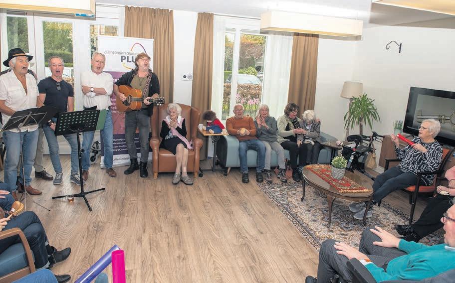 ren bij het echtpaar op bezoek. De kleindochter had haar baby’tje Nils meegenomen. Diens grote ogen schoten vol nieuwsgierigheid heen en weer tussen moeder, oma, overgroot opa, overgroot oma én het zingende koor. Muziek doet écht wat met iedereen. Dat bleek deze middag wel. Op een gegeven moment waren de optredens afgelopen. Anton Koopman, de zanger-gitarist van het collec�ef, maakte spontaan even contact met één van de bewoners. “’t Was gezellig, hè?” Ze antwoordde kort en bondig: “Harts�kke leuk!” Muziek naar de bewoners van zo’n woonzorgloca�e brengen: het smaakt naar meer. En het schreeuwt om vaker. Foto en tekst: Dennis Dekker.