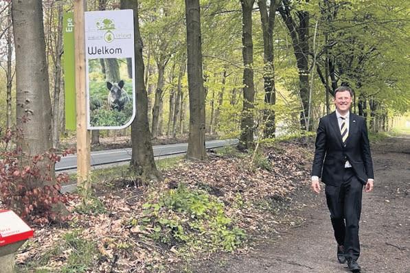 EPE- Wethouder Maarten Heere heeft donderdagmiddag een houten beeld in de vorm van een wild zwijn onthuld op het Marktplein voor het gemeentehuis in Epe.