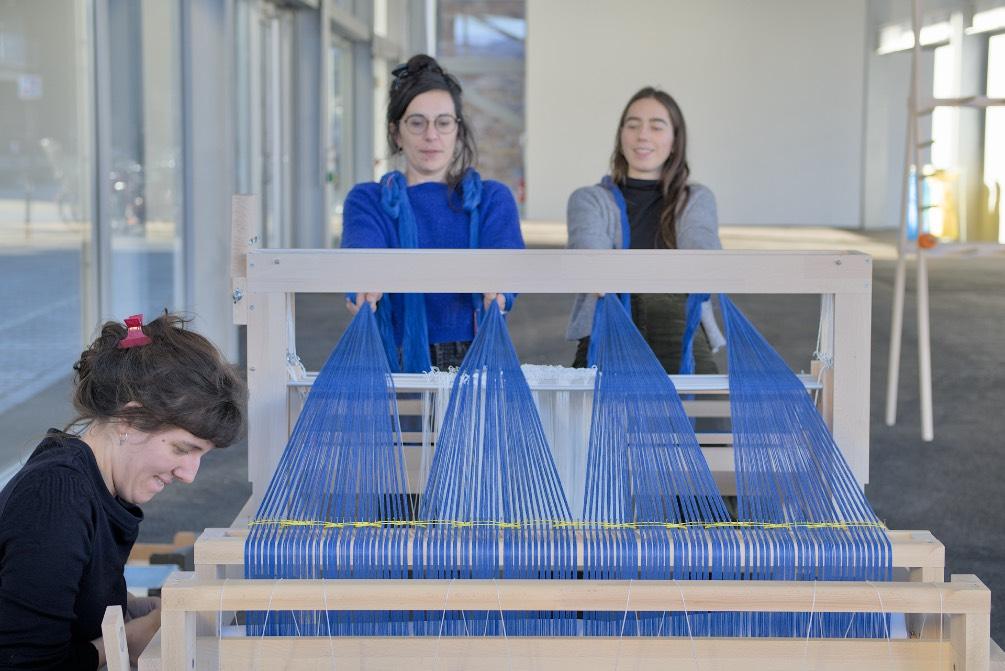 Les participant.es sont invité.es à tisser, le temps qu’iels le souhaitent. Il s’agit de petits groupes constitués, des passants ou des rendez-vous individuels.
