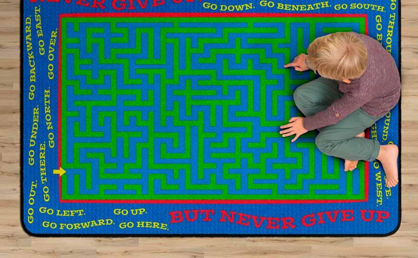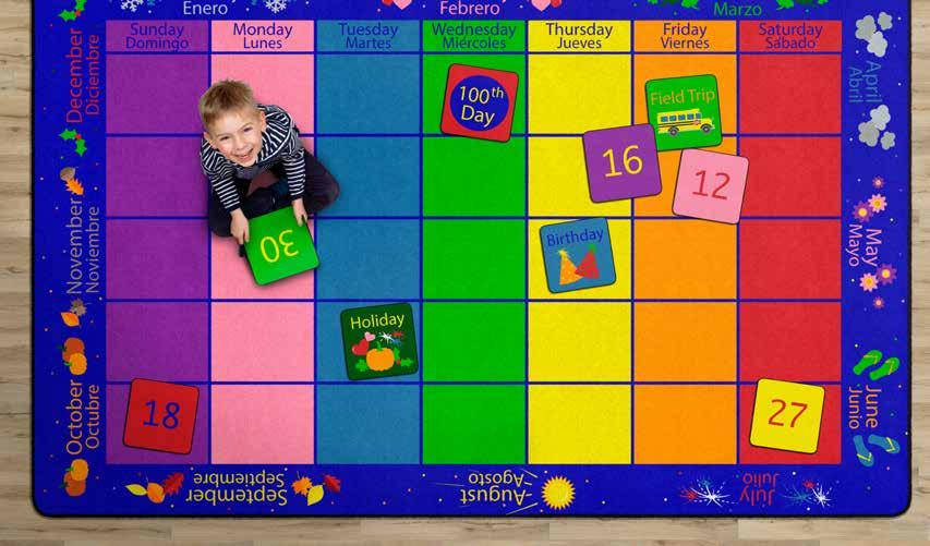 Fresh ideas, inspired by you! Our new additions bring the latest in educational design straight to the classroom. Featuring modern blackand-white patterns, soft pastels, and creative twists on best-selling favorites, these rugs are informed by the latest research in early learning and classroom engagement.