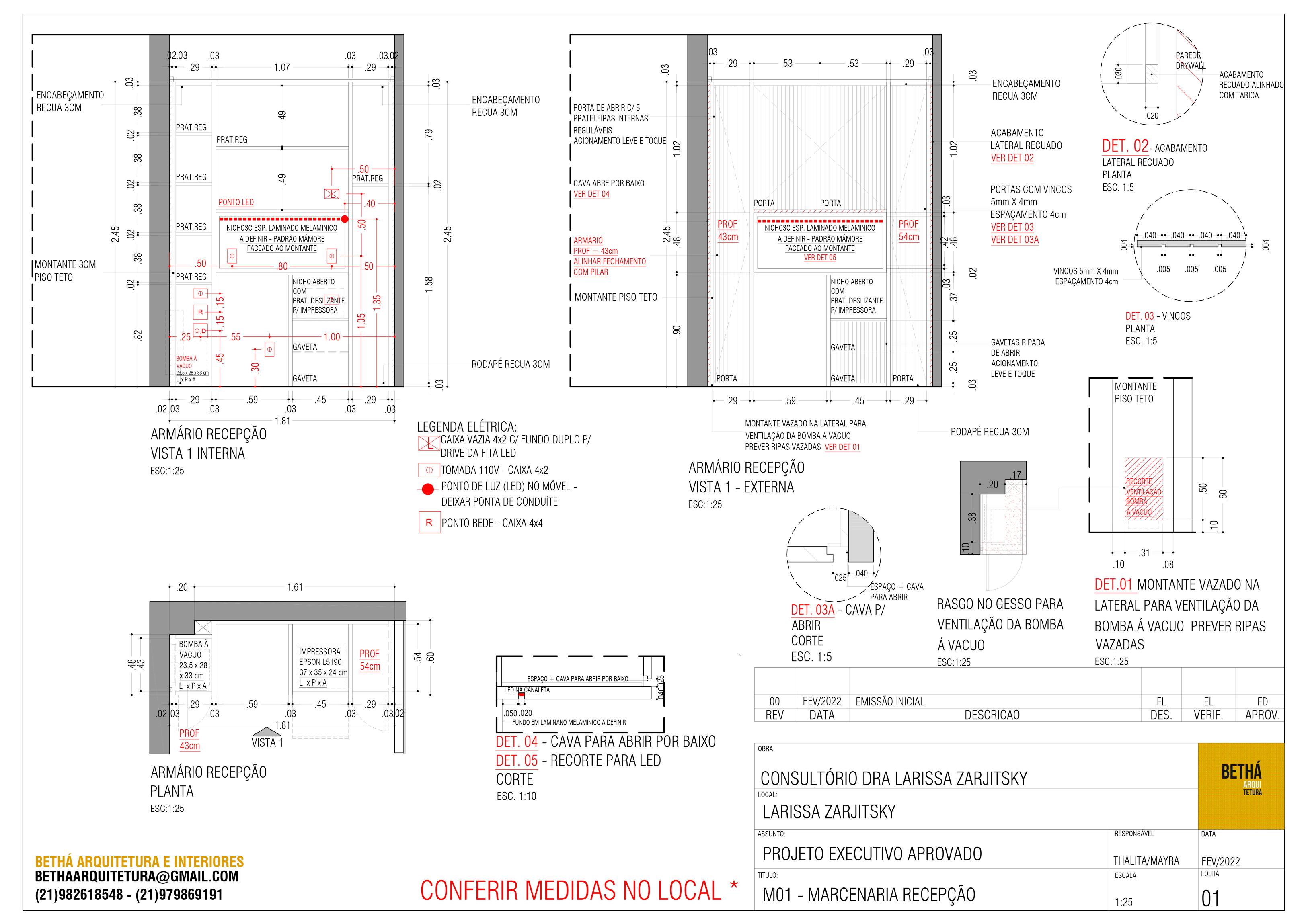 det. 04 - cava p/ abrir por baixo det. 05 - recorte para led CORTE