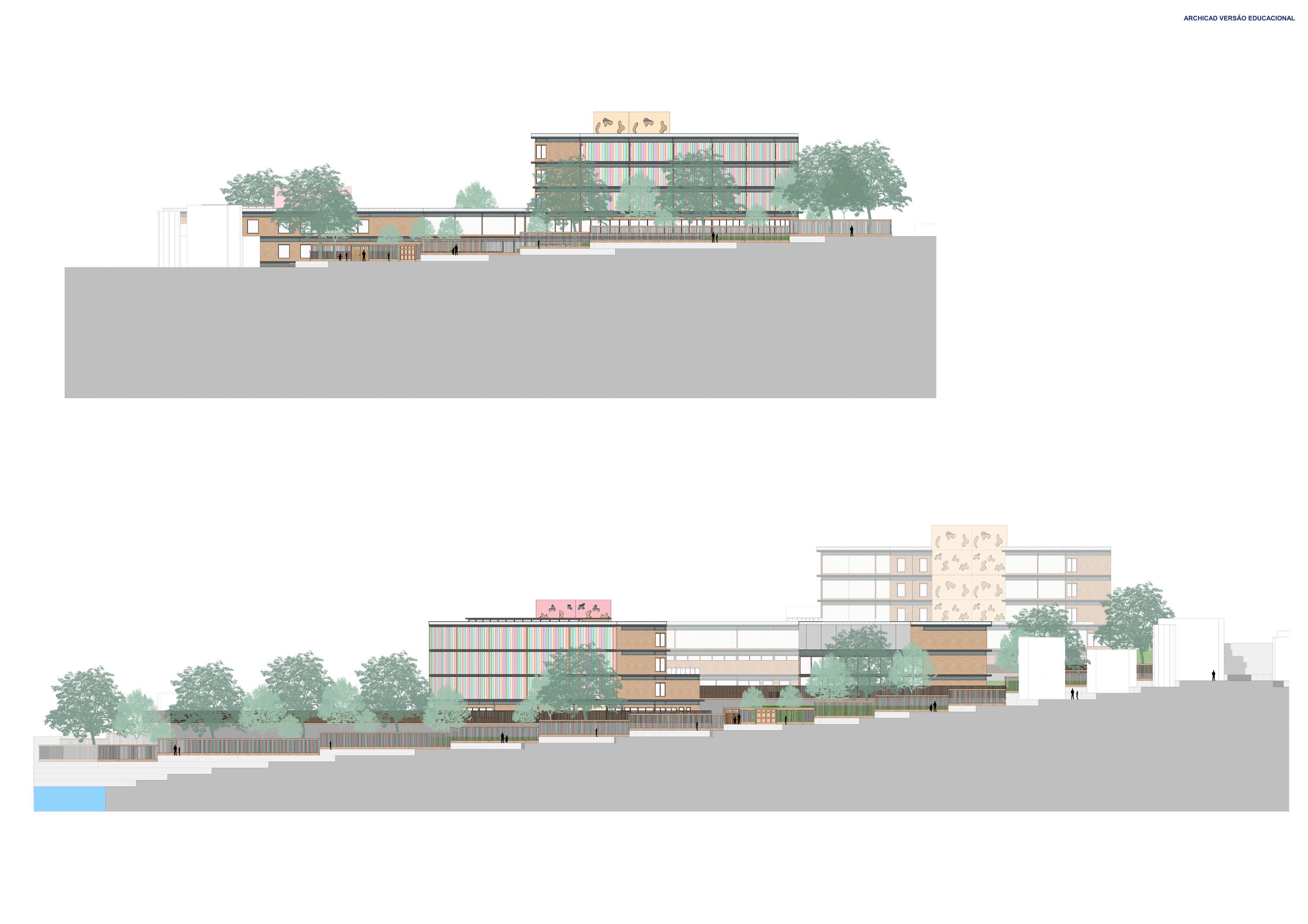 O projeto de conclusão de curso consiste em um Centro Educacional Unificado (CEU) de ensino fundamental, para crianças de 6 a 14 anos, com princípios da metodologia Waldorf que lida com o lado emocional e criativo, e prioriza a natureza. Programas usados no projeto: Archicad, Twinmotion, Photoshop, Illustrator, InDesign.