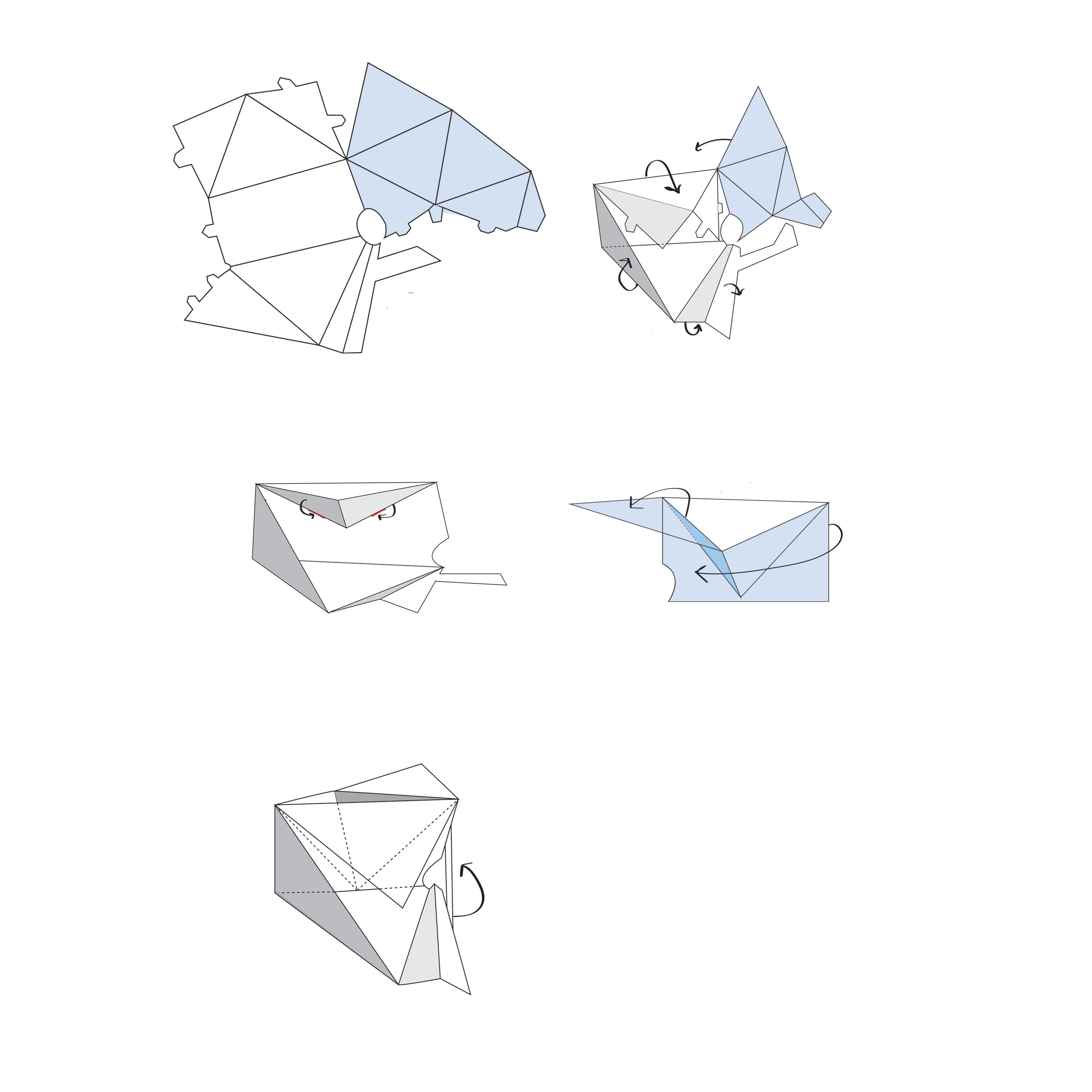 Crumpled paper was a major inspiration for my birdhouse. After creating a series of paper maquettes, I designed the model based on the paper’s most interesting folds while also considering my chosen bird’s needs. I then designed a template that allowed the house to be folded together from a thin plastic. I learned how to utilize site analysis and research to enhance my design.