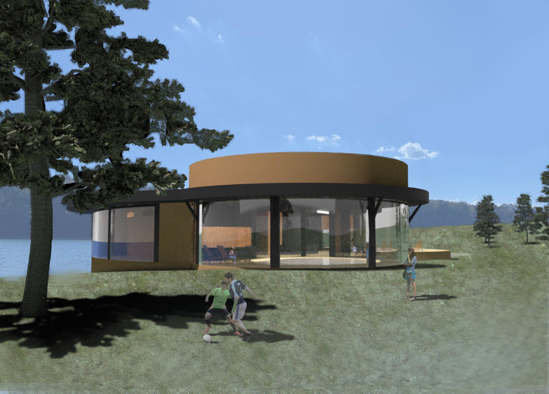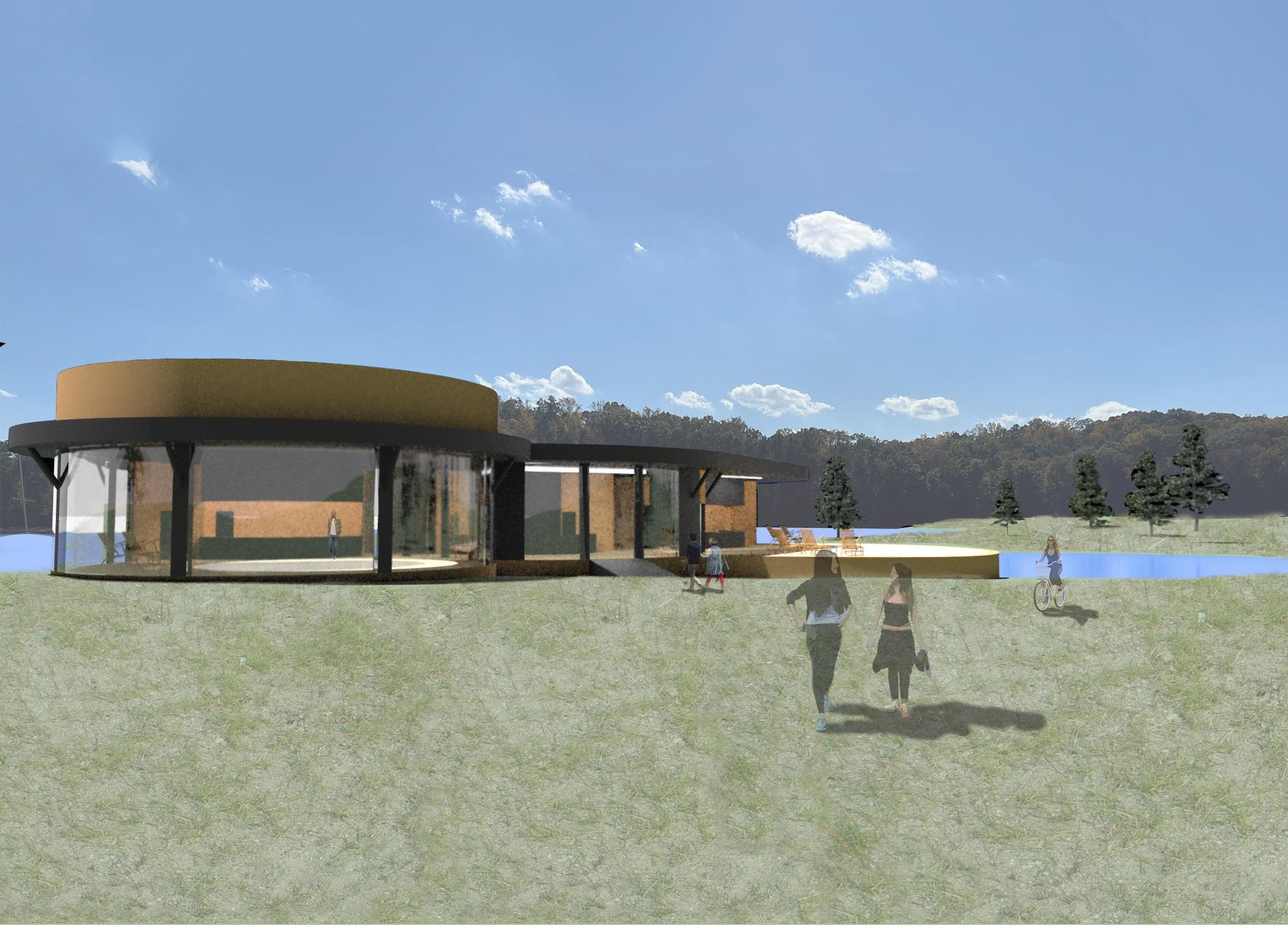 I designed a bathhouse around a roundabout hall that dispersed people in the flow of the space. I considered circulation paths and adjacencies to create an effective building. The house contains large, curved windows and a skylight above the indoor pool in order to invite the outside in. I challenged myself to turn an unconventional form into an efficient space.