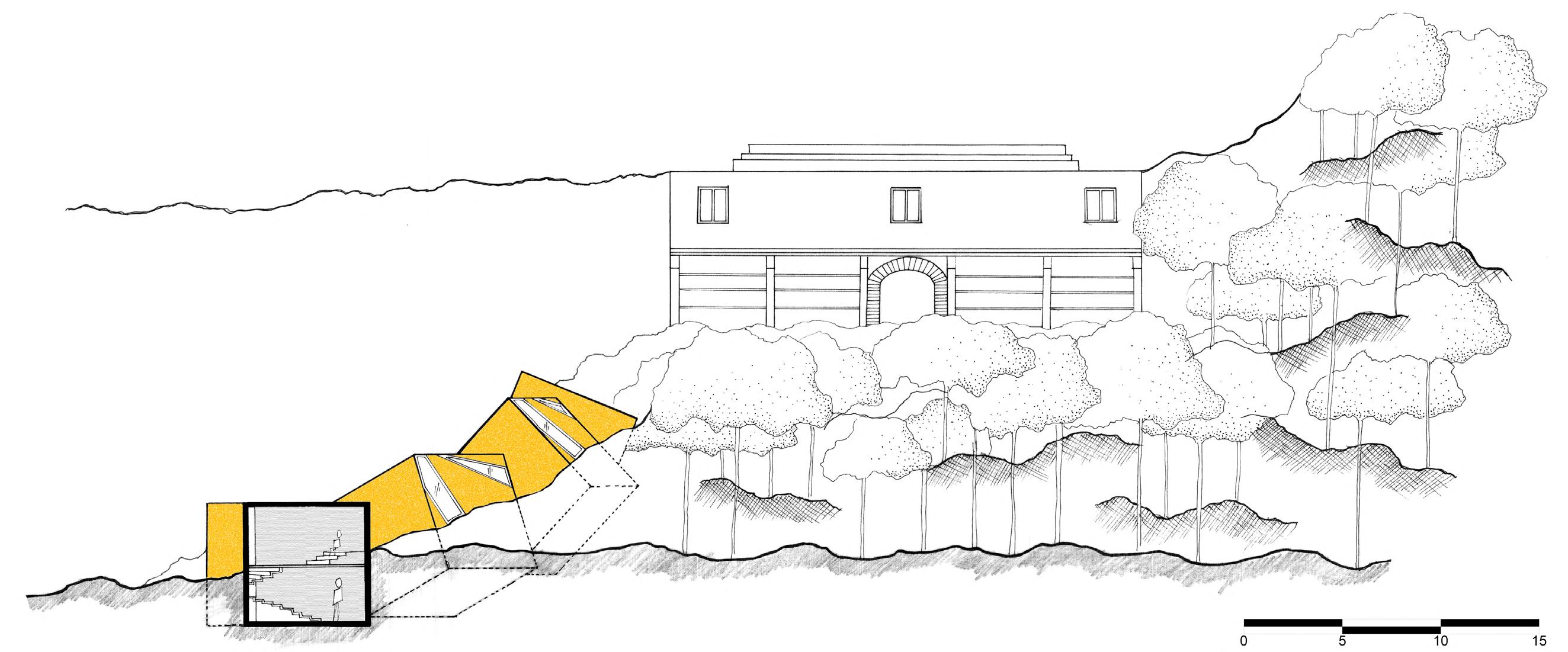 Accompanied by the rich landscape of a hill, the adrenaline rush experienced through the journey to reach the bookstore builds an exciting story for the visitor.